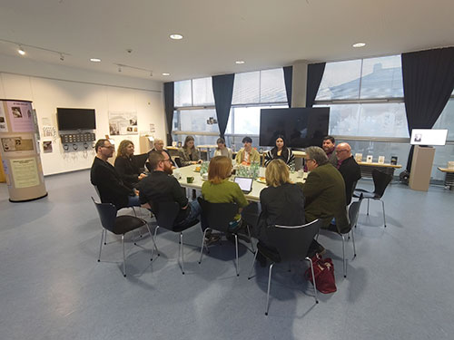 Im Johanna-Stahl-Zentrum, das von der Stadt Würzburg und dem Bezirk Unterfranken unterhalten wird, erhielten sie einen Einblick in die Fachbibliothek mit Literatur zu Judentum, Antisemitismus und jüdischer Geschichte. Zudem wurde deutlich, wie wichtig ihre Arbeit im Kontext von Bildung und Forschung zu jüdischem Leben ist. Das Zentrum dient nicht nur der wissenschaftlichen und pädagogischen Arbeit, sondern ist auch ein zentraler Baustein der lokalen Bildungs- und Erinnerungsarbeit: Schulklassen besuchen regelmäßig die Einrichtung, um sich mit jüdischer Geschichte, mit Gegenwartsperspektiven und mit Fragen von Diskriminierung und Antisemitismus auseinanderzusetzen. Gleichzeitig wurden Perspektiven für die Weiterentwicklung benannt – etwa der Wunsch, den Bestand der Bibliothek künftig noch besser über digitale Kataloge zugänglich zu machen und die Bildungsangebote weiter auszubauen.